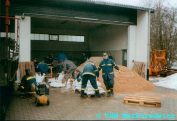 Dort hat der schmelzende Schnee und der anhaltende Regen zu einem bedrohlichen Ansteigen der Flüsse und Bäche im Landkreis geführt. Deshalb wurden von uns zusätzliche Sandsäcke sowie Helfer benötigt. In Marktredwitz wurden dann, auf Anforderung des Kreisbrandinspektors, Tausende von Sandsäcken gefüllt und vorrangig zwischengelagert, da im gesamten Landkreis keine Sandsäcke mehr vorrätig waren.