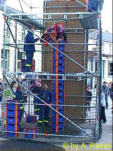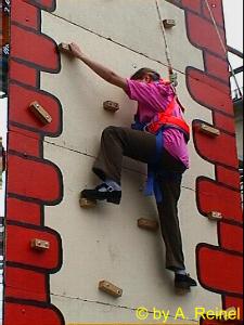 Aufgebaut waren unsere Seifenkistenbahn, das Bierkistenstapeln und die Kletterwand.