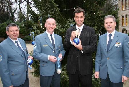 THW-Vizepräsident Rainer Schwierczinski schmückte am Nikolaustag gemeinsam mit dem THW-Landesbeauftragten für Bayern, Dietmar Löffler, dem THW-Landessprecher für Bayern, Rudolph Skalitzky und dem bayerischen Europaminister, Markus Söder, den Platz vor der bayerischen Landesvertretung in Brüssel mit einem THW-Weihnachtsbaum. Der THW-Ortsverband Selb hatte den Baum geschnitten und im THW-Ortsverband Baiersdorf entstanden die Christbaumkugeln mit THW-Zahnrad, Europa-Emblem und Bayern Wappen. Auch Bayerns Ministerpräsident Günter Beckstein freute sich über den Weihnachtsschmuck.