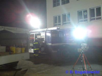 Die Ursache des Einsatzes war ein Brand in Lagerräumen des Factory-In. Dabei wurde auch eine Großteil der Elektroverteilung des Fabrikgebäudes zerstört, so daß die Tunnelöfen einer dort ansässigen Firma nicht mehr weiterbetrieben werden konnten. Hierfür wurde mit dem NEA die Stromversorgung sichergestellt, um den Ausfall der Produktion in Grenzen zu halten.