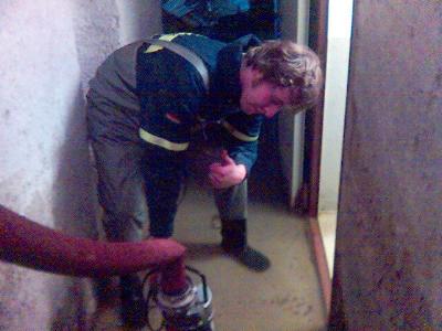 Um das Wasser aus den Kellern der Wohnhäuser zu bekommen wurden zwei Mast Pumpen mit 800l und 600l pro Minute eingesetzt.