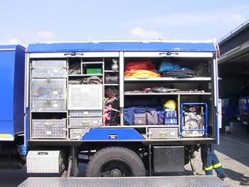 Zwischenzeitlich wurden alle Fahrzeuge Pumpen und Aggregate