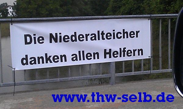Das THW Selb bedankt sich bei allen mithelfenden Organisationen und besonders auch bei der betroffenen Bevölkerung für die großartige Unterstützung und Zusammenarbeit, ebenso für Unterkunft und Verpflegung während des Einsatzes!