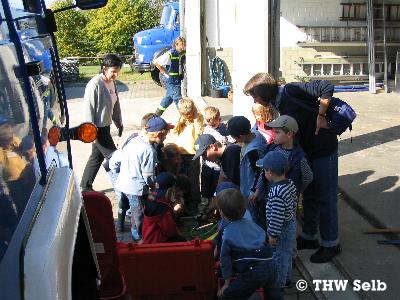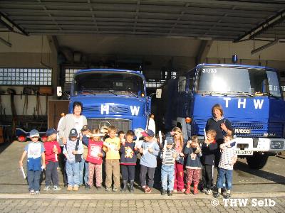 Einen besonderen Nachmittag erlebte jetzt eine Gruppe des Kindergarten Erkersreuth. Bei ihnen kamen drei Einsatzfahrzeuge des Technischen Hilfswerks Selb (THW) vorbei und holten sie ab, zu einem Erlebnisnachmittag auf dem Gelände des THW am Schreinersteich.