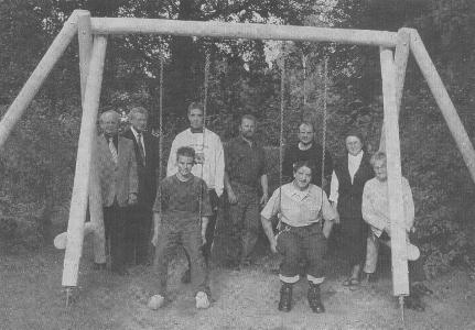 Etliche tausend Mark hat das Technische Hilfswerk (THW) in Selb der Pfarrei Herz Jesu bereits sparen helfen, denn einige Außenspielgeräte des Herz-Jesu-Kindergartens sind in der THW-Werkstatt entstanden. Das neueste Stück, eine stabile Schaukel, wurde jetzt übergeben und eingeweiht. Pfarrer Roman Jobst bedankte sich im Namen des Trägers beim THW-Ortsverband für die saubere Arbeit. Manfred Winkler vom THW meinte, dass sechs junge Helfer die Arbeit gerne getan hätten. Das Holz wurde bereits im Februar geschlagen und dann trocken gelagert. Die Beschläge wurden beim THW hergestellt und noch dem Schälen und Zuschneiden des Holzes vor Ort angepasst. Dann wurde die Schaukel montiert. Insgesamt waren rund 60 Arbeitsstunden notwendig, die die jungen THW-Helferin den Abendstunden, sprich in ihrer Freizeit ableisteten. Bei der Einweihung wurde dann schon das nächste Projekt beraten: Es ist geplant, eventuell ein Dach über den Balken zu fertigen, um das Holz besser zu schützen. Das Bild zeigt von links Manfred Winkler vom THW, Pfarrer Roman Jobst, die fleißigen THW-Helfer sowie Kindergartenleiterin Schwester Marie Esther und Erzieherin Christa Ernstberger Foto: Gisela König