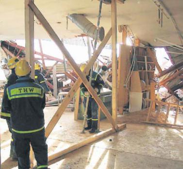 Ehemalige Schreinerei Kunze: THW muss eingestürztes Dach abstützen