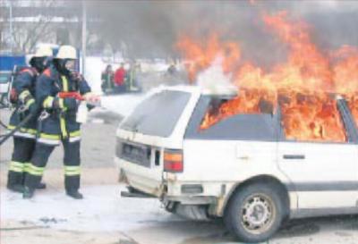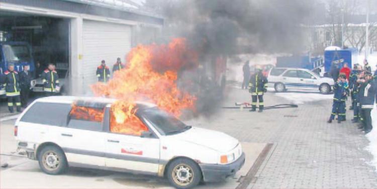Zum Abschluss des Tages ging es dann nochmals heiß her. Die Feuerwehr Arzberg führte vor, wie ein Autobrand mit Schaum gelöscht wird.