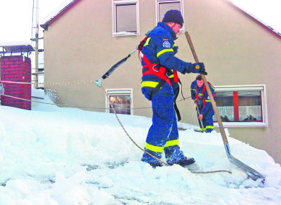 Die Schneefälle der vergangenen Woche bescherten den Helfern des Technischen Hilfswerks (THW) aus Selb vier Tage voller Einsätze. Von Mittwoch bis Samstag mussten mehrere Dächer in Selb, aber auch in Marktredwitz und Helmbrechts von zum Teil großen Schneelasten geräumt werden. Da das THW eine Katastrophenschutzorganisation des Bundes ist, kann es auch überregional eingesetzt werden. In Marktredwitz wurde zusammen mit dem dortigen THW das Dach eines Einkaufsmarktes geräumt und in Helmbrechts, zusammen mit dem THW Naila und verschiedenen Dachdeckerfirmen, das Dach einer Produktionshalle. Auf beiden Dächern gab es teils bis zu zwei Meter hohe Schneeverwehungen. Auch in Selb gab es mehrere Einsatzstellen. Hier wurden vier Dächer geräumt und an der Staatsstraße zwischen Selb und Silberbach mehrere Bäume gefällt, die unter den Schneemassen auf die Straße zu stürzen drohten. Insgesamt wurden bei acht Einsätzen über 250 Helferstunden geleistet.