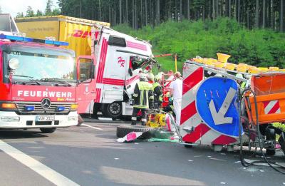 Die Autobahnmeisterei hatte die rechte Fahrspur aufgrund einer Tagesbaustelle gesperrt. Durch die Wucht des Aufpralls wurde das Führerhaus stark deformiert und der 55-Jährige eingeklemmt. Eine Vielzahl an Rettungskräften von Feuerwehr, THW und Rettungsdienst versuchte den aus Niedersachsen stammenden Fahrer aus dem Fahrzeugwrack zu befreien, jedoch vergeblich. Er verstarb noch am Unfallort.