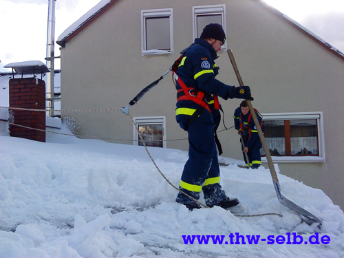 Am Mittwoch, 03.02.2010 mussten mehrere Dächer nach den starken Schneefällen der vergangenen Tage von den Schneelasten befreit werden. In Selb wurde ein Wohnhaus geräumt und in Waldershof der Ortsverband Marktredwitz mit den beiden Kippern beim Räumen eines Einkaufsmarktes unterstützt.