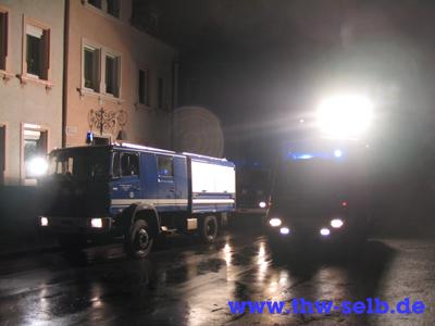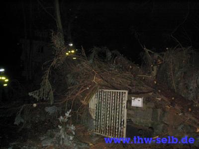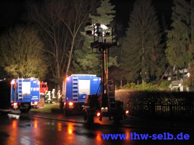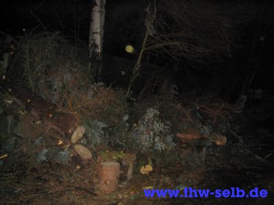 Bereits kurze Zeit später wurde das erste Fahrzeug über die Feuerwehr-Einsaztzentrale angefordert. Die Einsatzstellen in dieser Nacht wurden von der FFW Selb koordiniert, wovon das THW Selb 10 Einsätze übernahm. Die Einsatzaufträge waren unter anderem Dach droht abzuheben, Baum auf Haus, Bäume auf Straße, auch wurde ein Fenster verschalt.