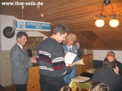 Bei der Weihnachtsfeier des Technischen Hilfswerks Selb (THW) blickte Udo Winkler, der vom Landesbeauftragten von Bayern für fünf weitere Jahre zum Ortsbeauftragten ernannt wurde, über ein erfolgreiches Jahr 2003 zurück, dessen Höhepunkt das 50-jährige Bestehen des Ortsverbandes Selb war.